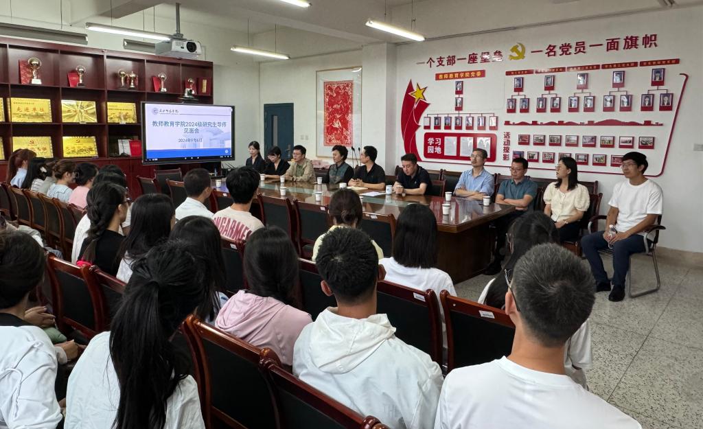 为做好2024级研究生新生导师双选工作,以便更客观、科学、合理地开展师生双向选择。教师教育学院在507会议室召开2024级研究生新生导师见面会。学院副院长吴彦文、副院长牛震乾、研究生导师、2024级全体研究生参加会议。