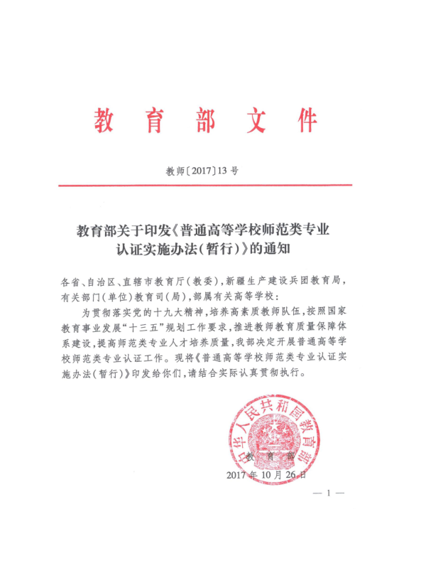 1.教育部发布师范类专业认证实施办法与标准,统筹协调、指导监督认证工作,负责中央部门所属高校相关认证工作;省级教育行政部门负责本地区师范类专业认证工作,结合地方实际情况制订本地区师范类专业认证实施方案,报教育部教师工作司备案后实施。