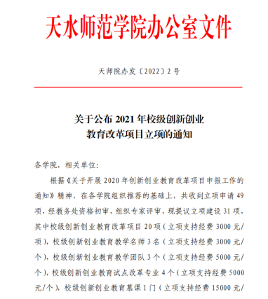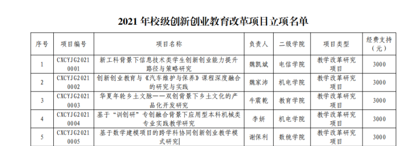 11.2021 年校级创新创业教育改革项目立项名单
