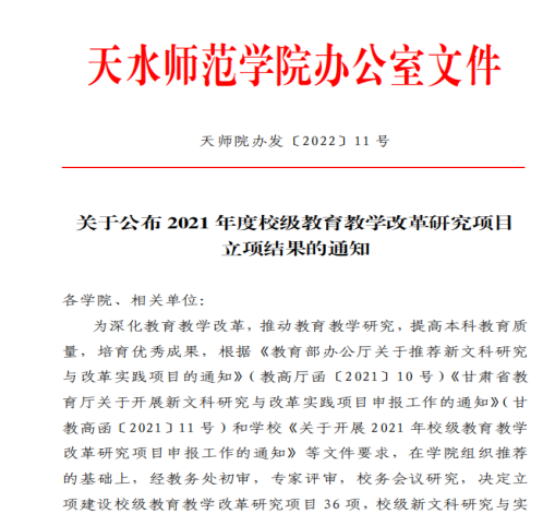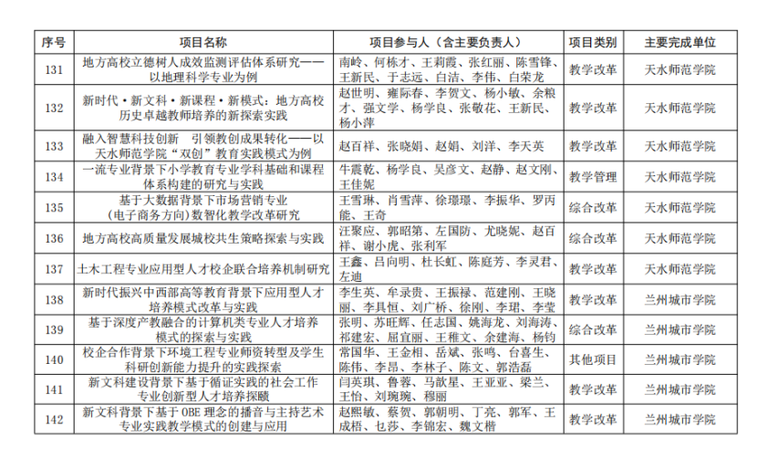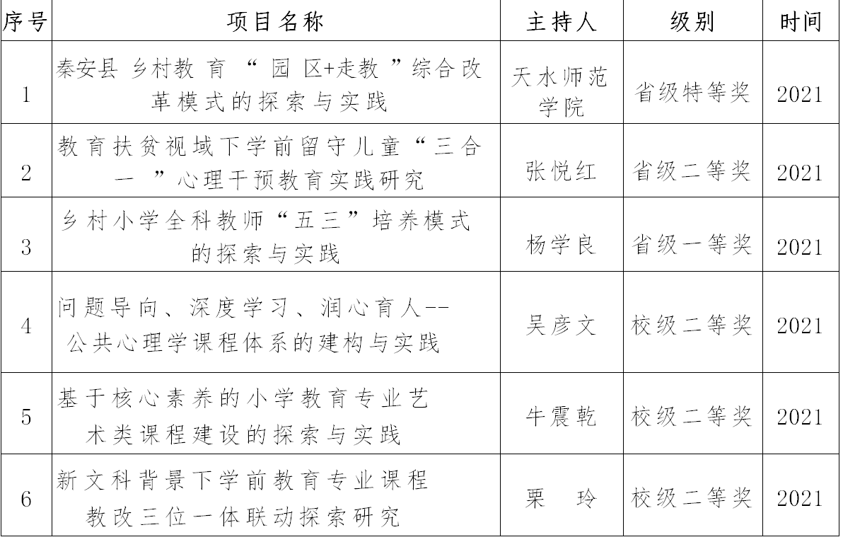 6.基于新文科背景的小学教育一流专业建设探索与实践,教育部首批新文科项目7.与儿童图书馆联动:小幼师资培养的创新创业机制研究