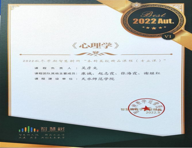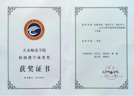 4.问题导向、深度学习、润心育人——公共心理学课程体系的建构与实践(校级,2022)