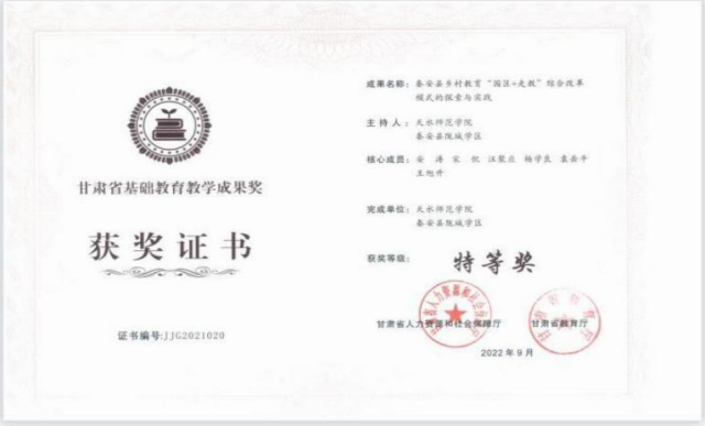1.秦安县乡村教育“园区+走教”综合改革模式的探索与实践(省级,2021)