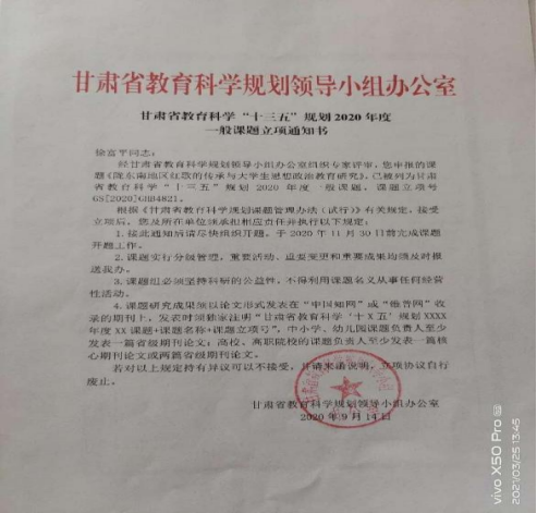 10.陇东南地区红歌的传承与大学生思想政治教育研究项目