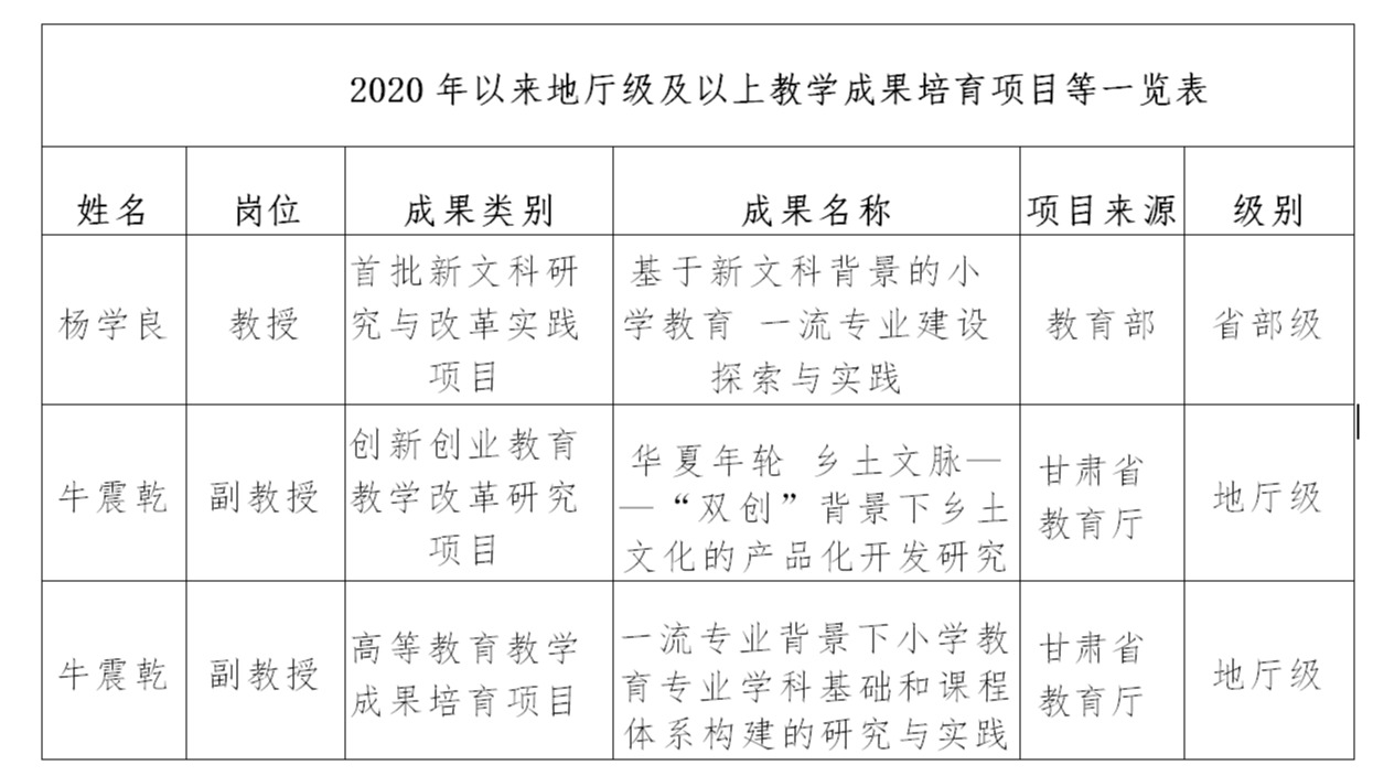 5.2020年以来地厅级及以上教学成果培育项目