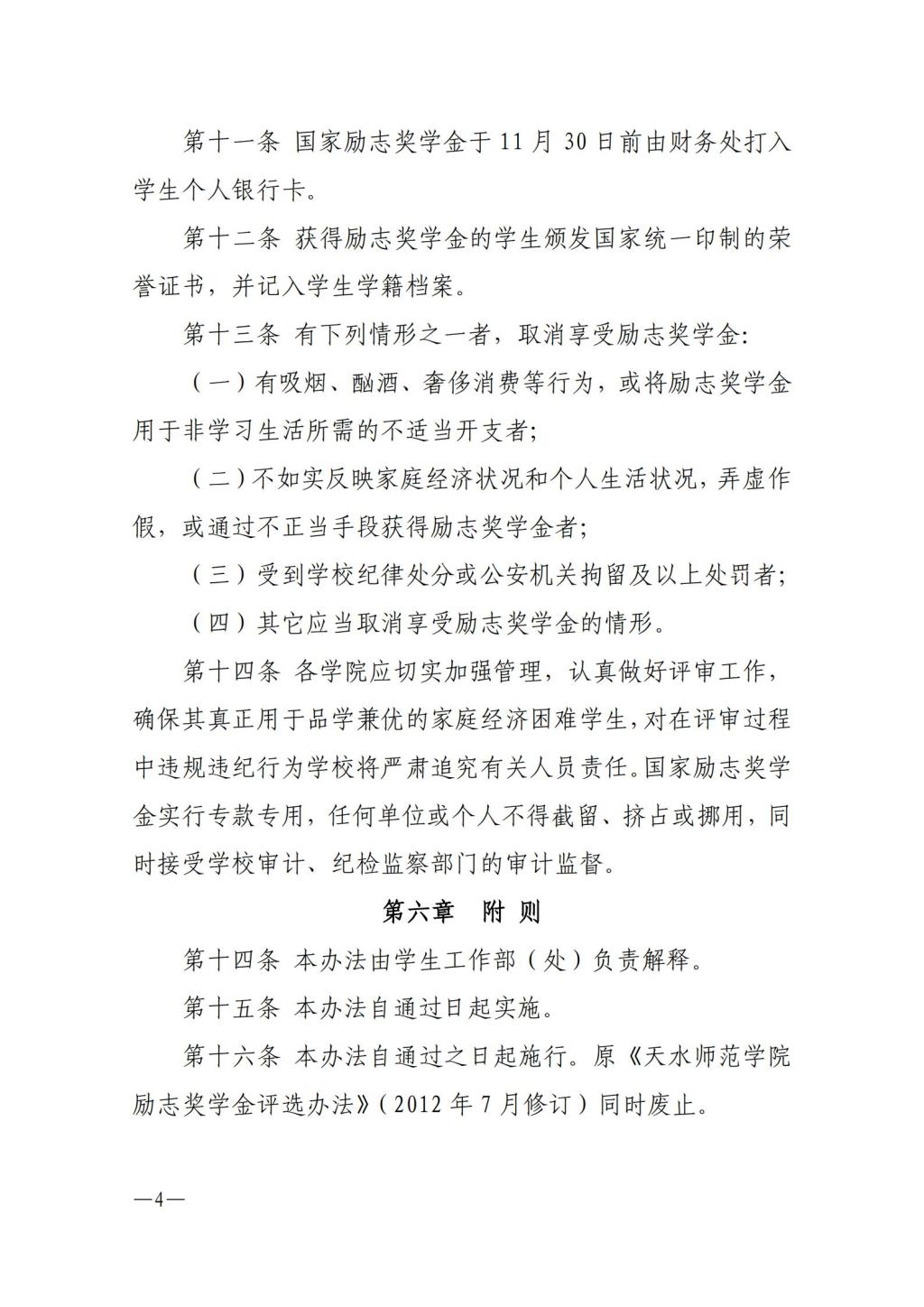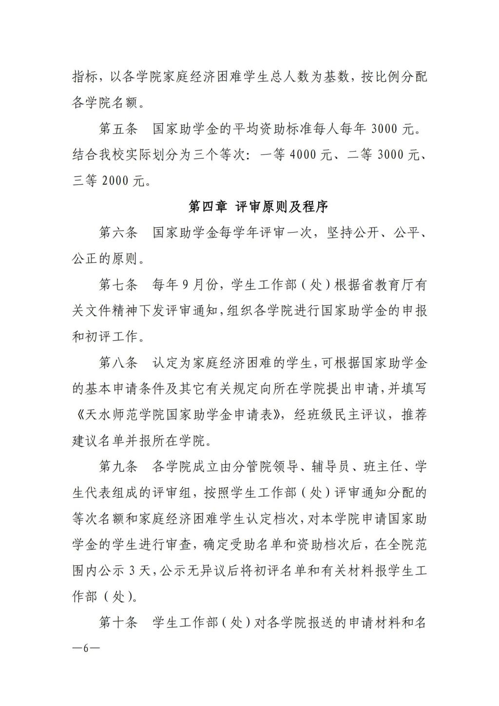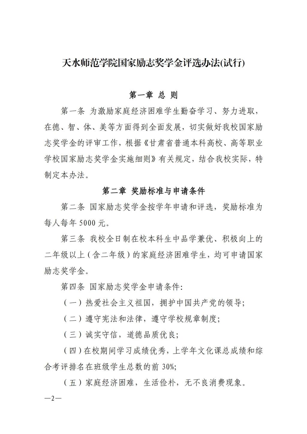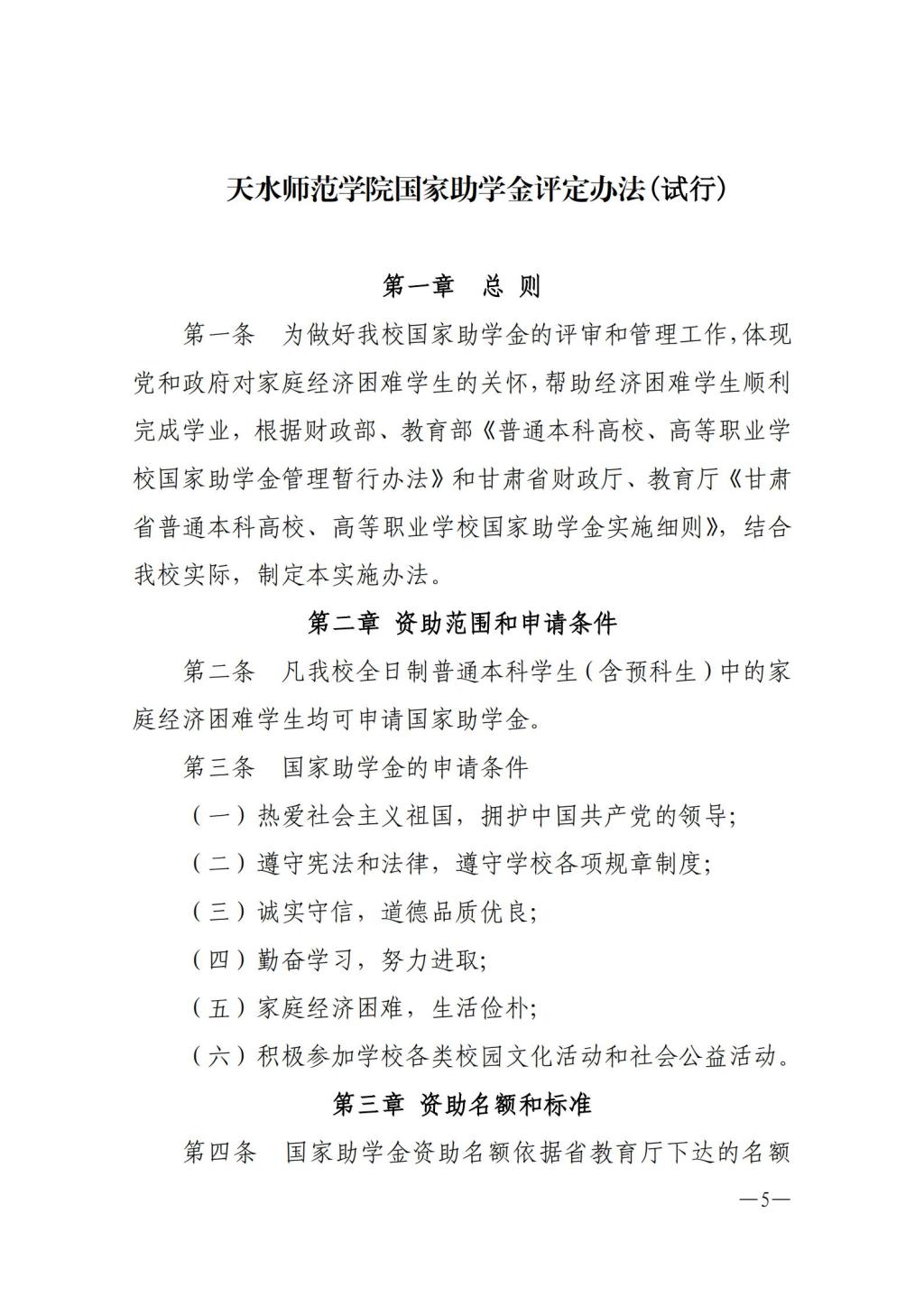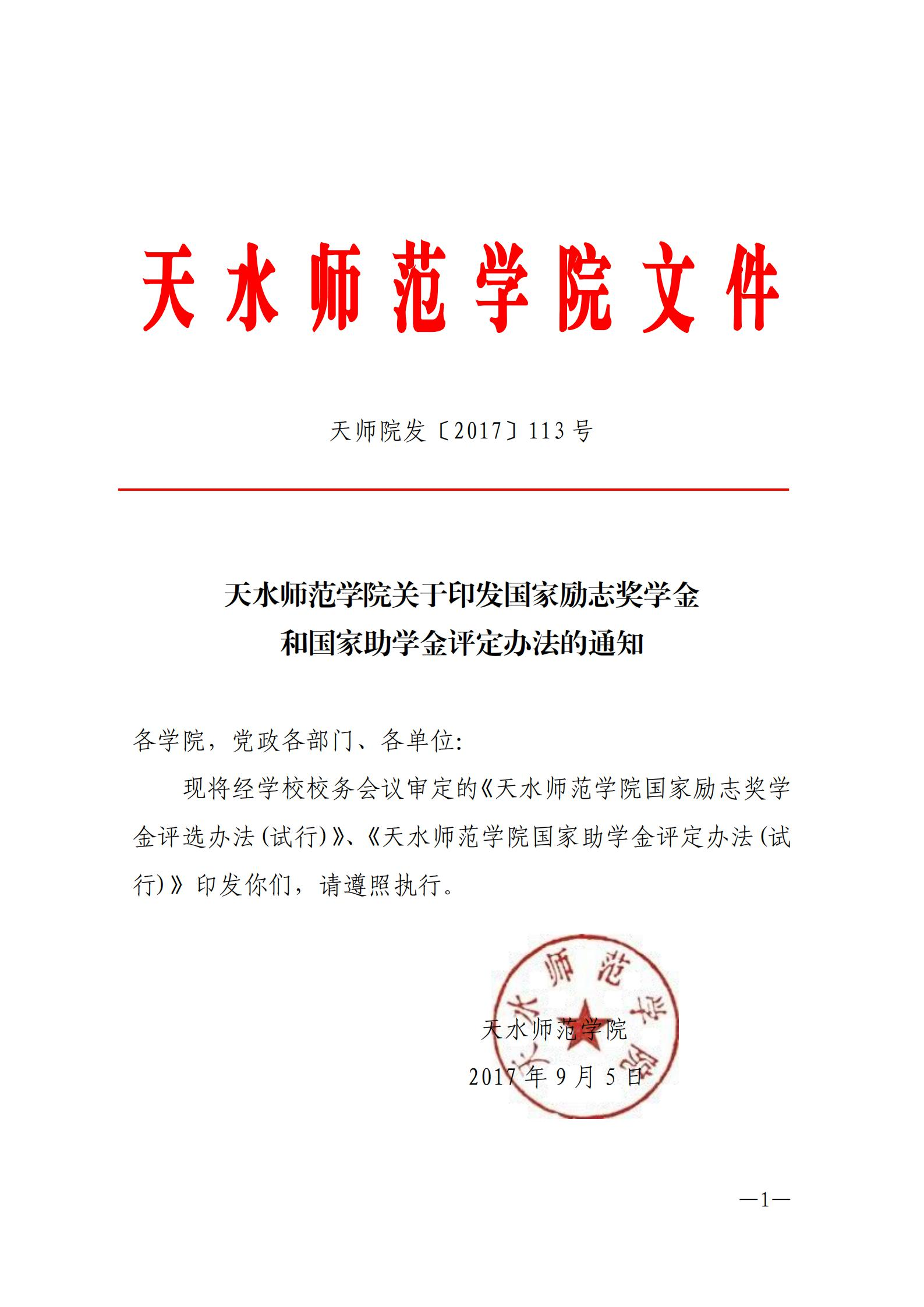 天水师范学院关于印发国家励志奖学金和国家助学金评定办法的通知