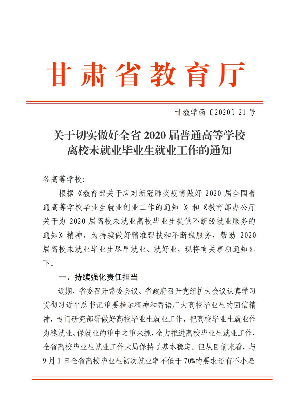 关于切实做好全省2020届普通高等学校离校未就业毕业生就业工作的通知.PDF